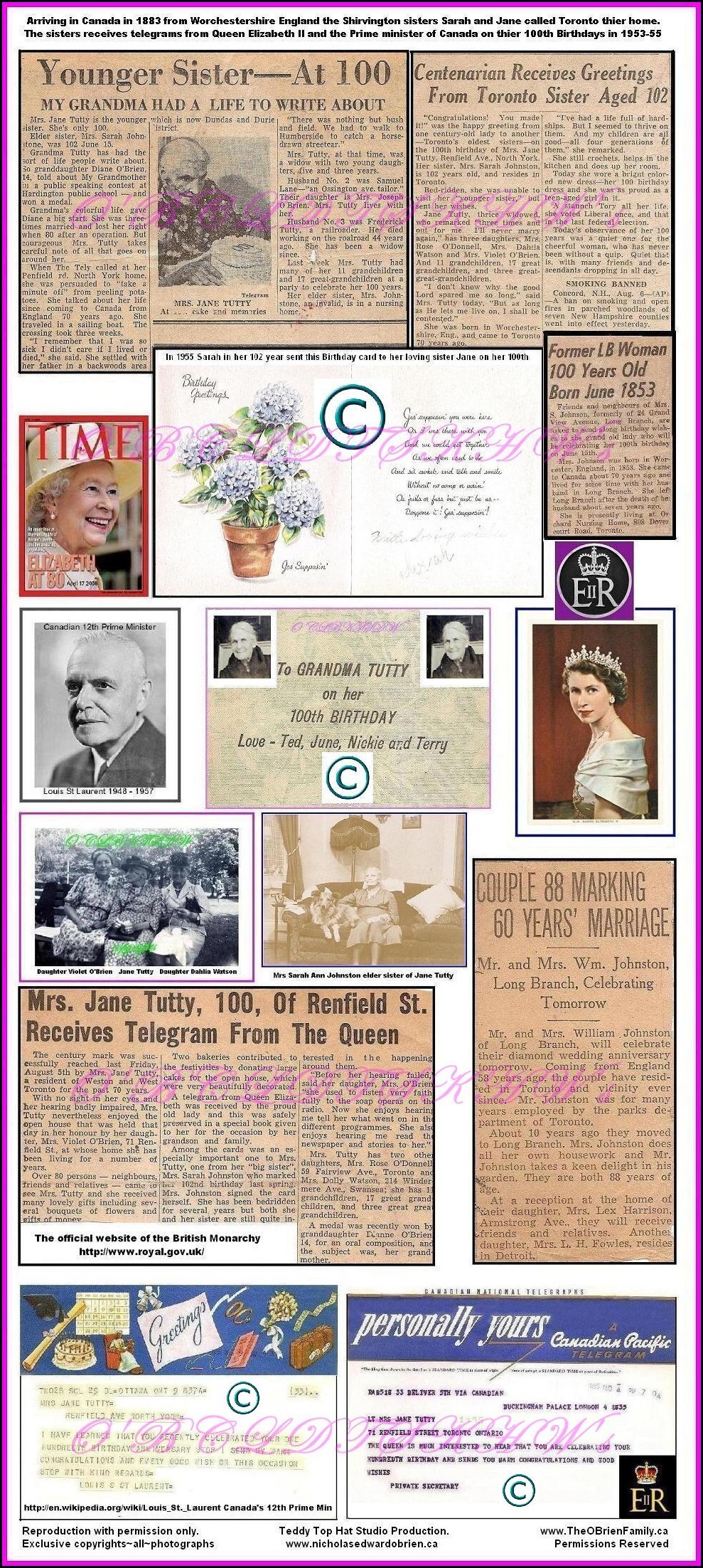 Toronto 1955 Jane Tutty cellebrates her 100th birthday with her family all five generations